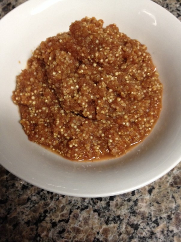 Quinoa for breakfast!Β In my quest for non-bread complex carbs in the morning (less than 2 weeks left of my Lenten pledge!), I tried this recipeΒ for apple cinnamon quinoa. Think of it as a crunchier oatmeal π