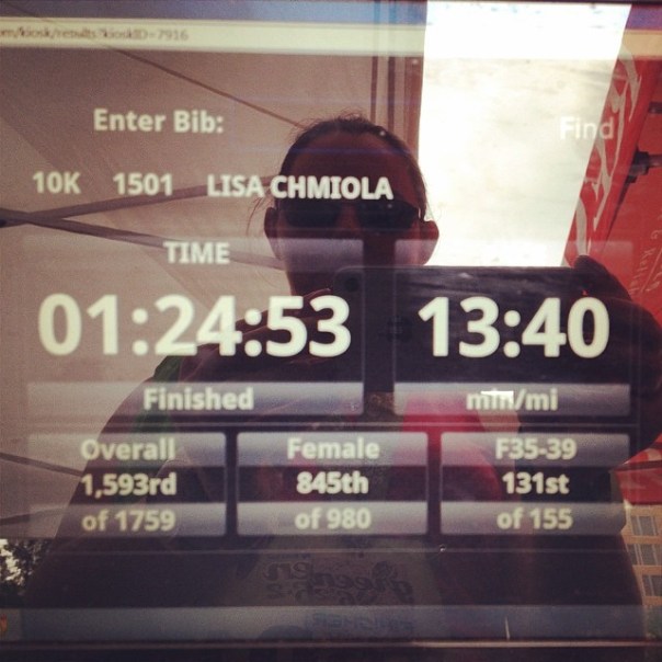 We finished out with stretches using a cord that resembled a yoga strap (again, excited because I have one of these too!). We discovered my IT band is really tight, so I am your stereotypical runner. A fresh application of KT tape and I was good to go.